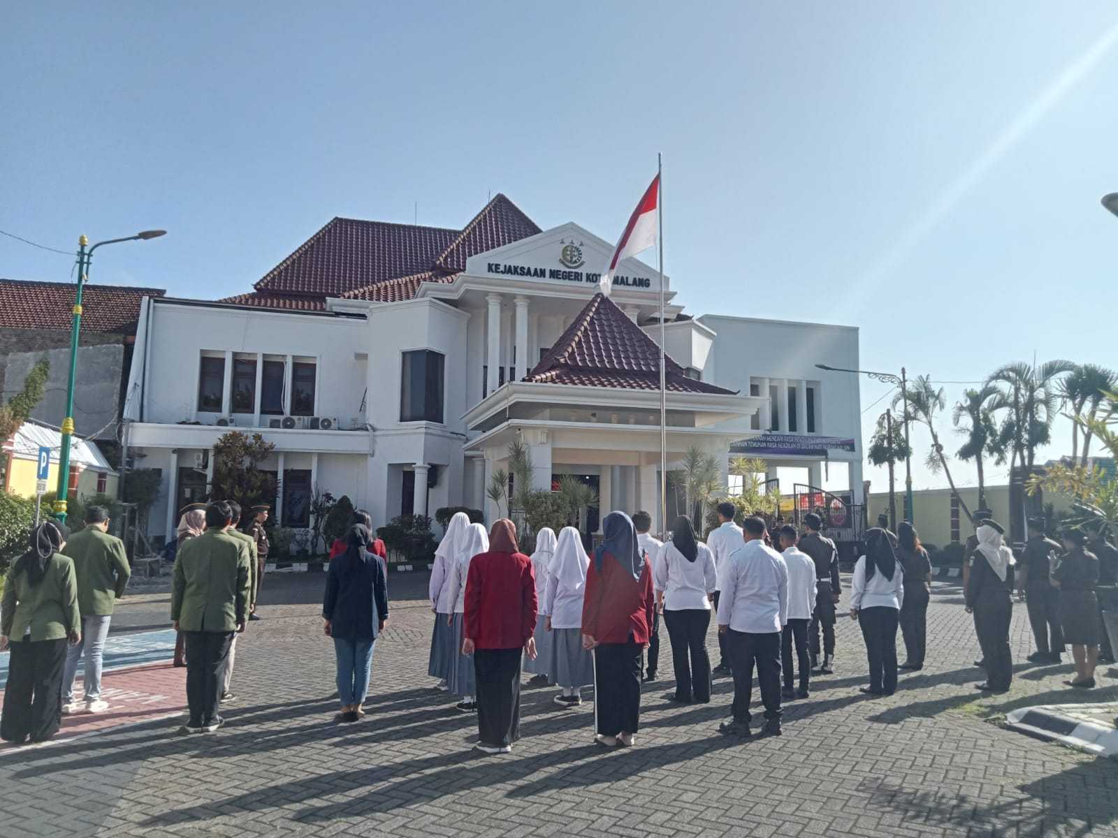 Keterangan foto : Apel pagi Kejaksaan Negeri Kota Malang, Senin (13/3)Pojokpublik.id Malang – Kepala Kejaksaan Negeri Kota Malang Edy Winarko melalui Kasi Intelijen Eko Budisusanto menyampaikan bahwa Kejaksaan Negeri Kota Malang melaksanakan Apel Kerja Pagi pada hari Senin 13 Maret 2023 pukul 07.30 WIB. Kegiatan tersebut bertempat di halaman kantor Kejaksaan Negeri Kota Malang. Kegiatan apel diikuti oleh Para Kasi serta seluruh pegawai Kejaksaan Negeri Kota Malang.